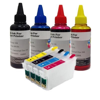 KIT 4 CARTUCCE RICARICABILI AUTORESETTANTI PER EPSON T1281 T1282 T1283 T1284 CON CHIP + 4 X 100ml INCHIOSTRI DI RICARICA